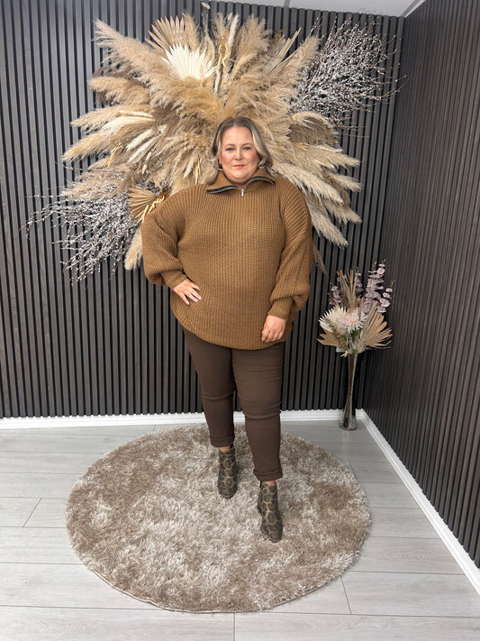 NATASHA 1/2 ZIP JUMPER - BROWN