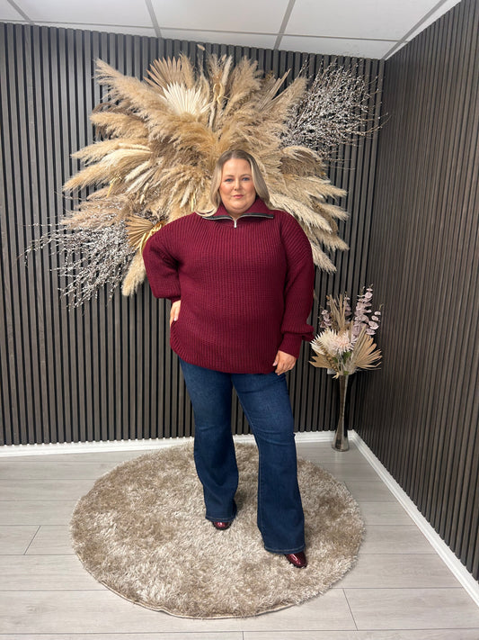 Sold outNATASHA 1/2 ZIP JUMPER - BURGUNDY