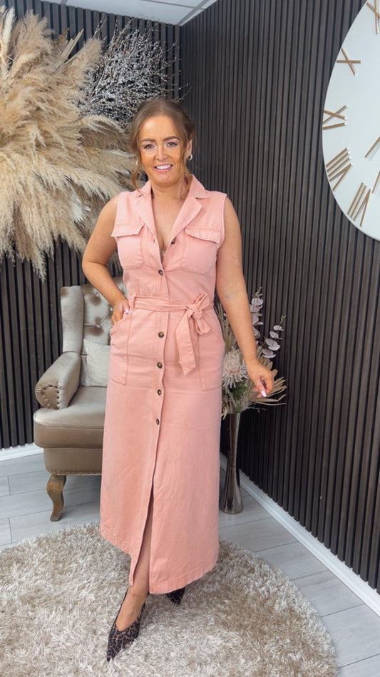 IZZY DENIM DRESS - PINK