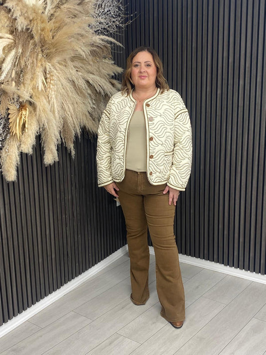 Sold outWINNIE CARDIGAN - CREAM/BROWN