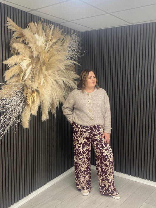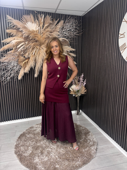 BEATRICE WIDE LEG TROUSERS - BORDEAUX