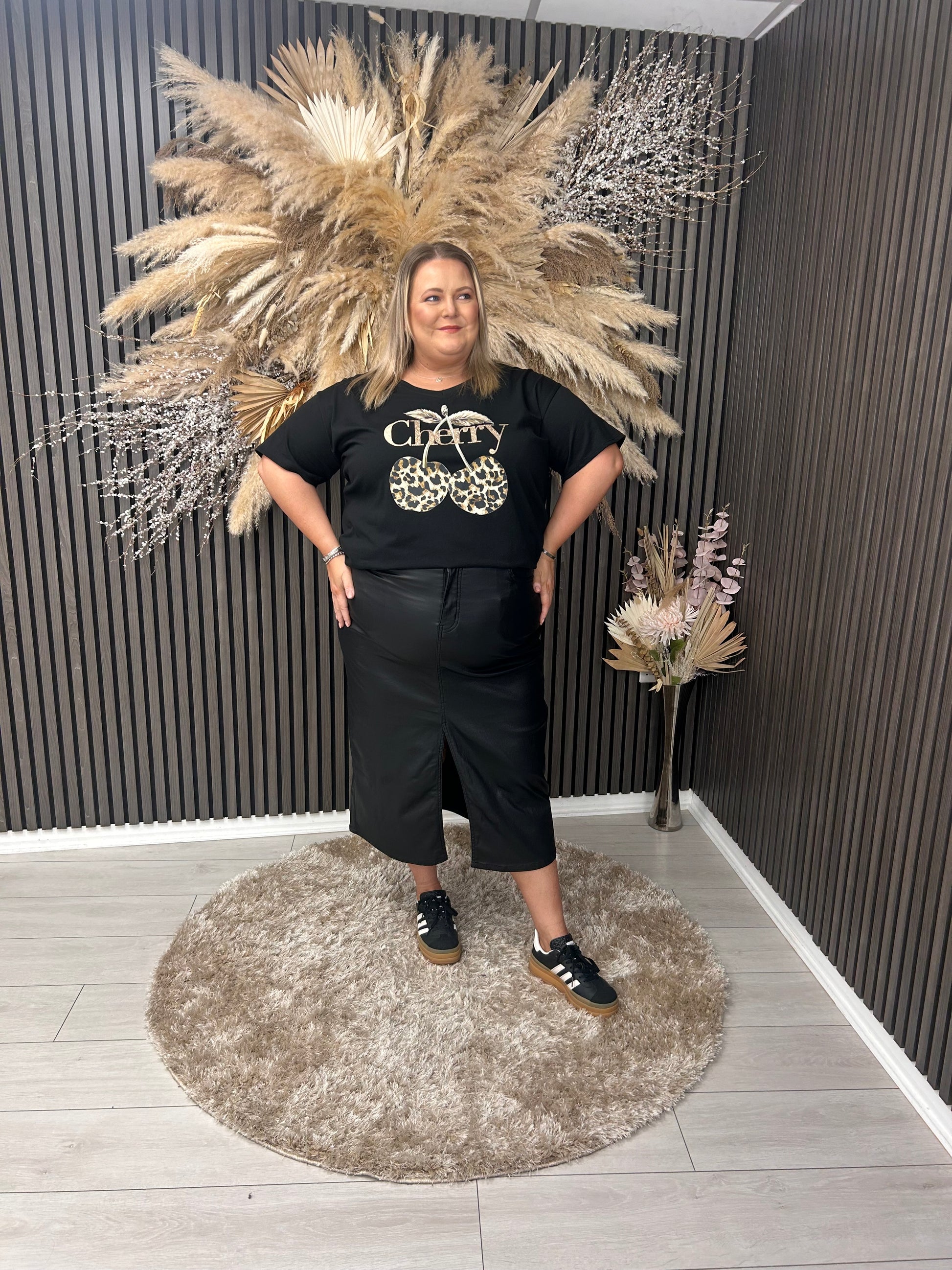 This black V-neck T-shirt crafted from Italian cotton offers exceptional comfort and style, ideal for autumn and winter wear. Specially tailored to flatter plus sizes, it combines quality fabric with thoughtful design.