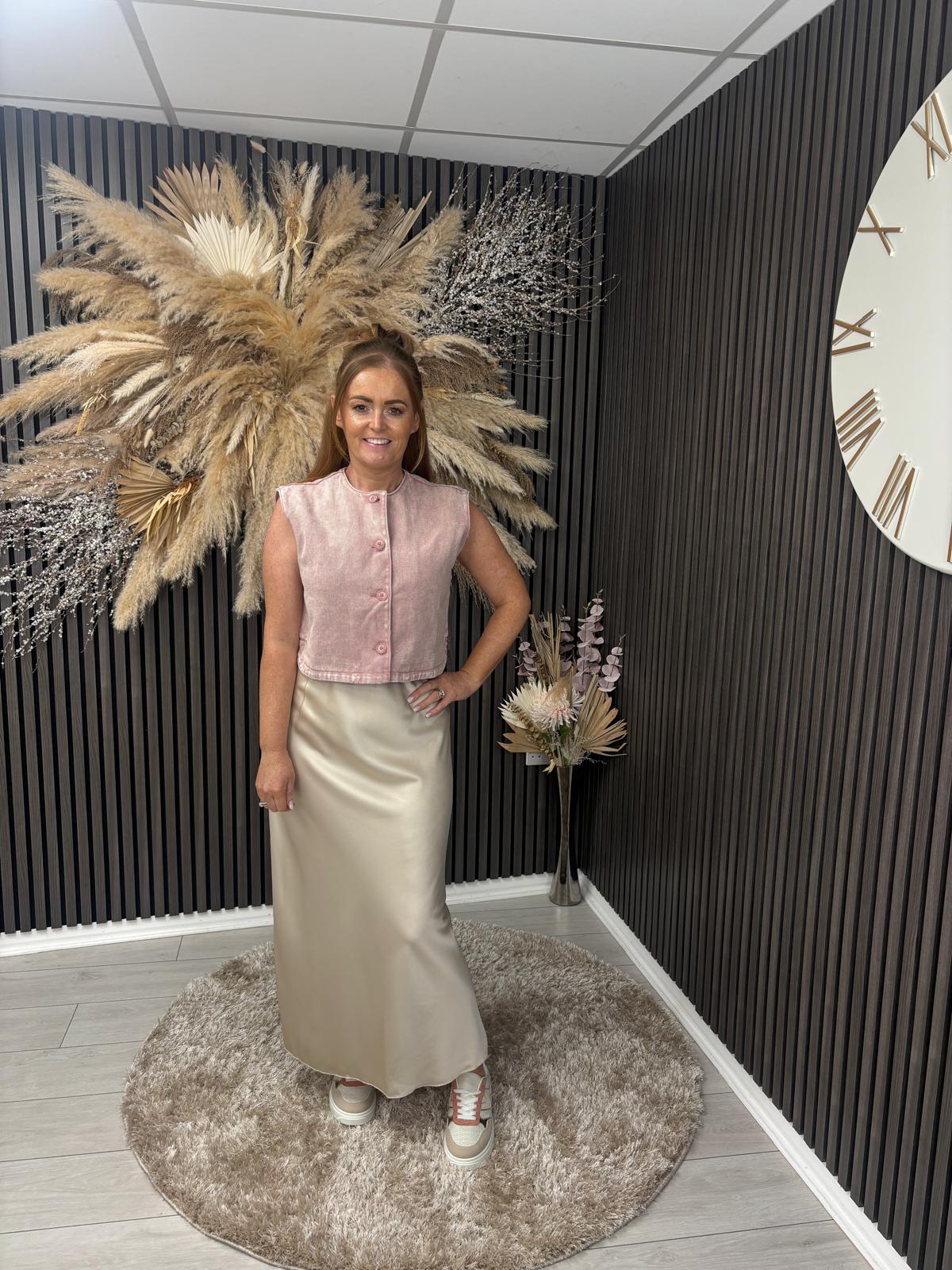 This buttoned denim sleeveless jacket, is an excellent choice for autumn wear. It adds a relaxed, casual element to your outfit with ease.