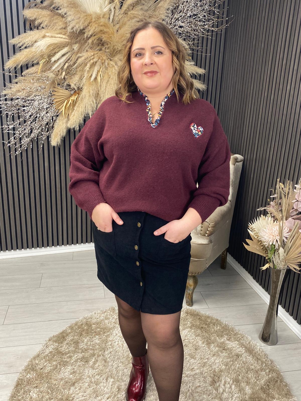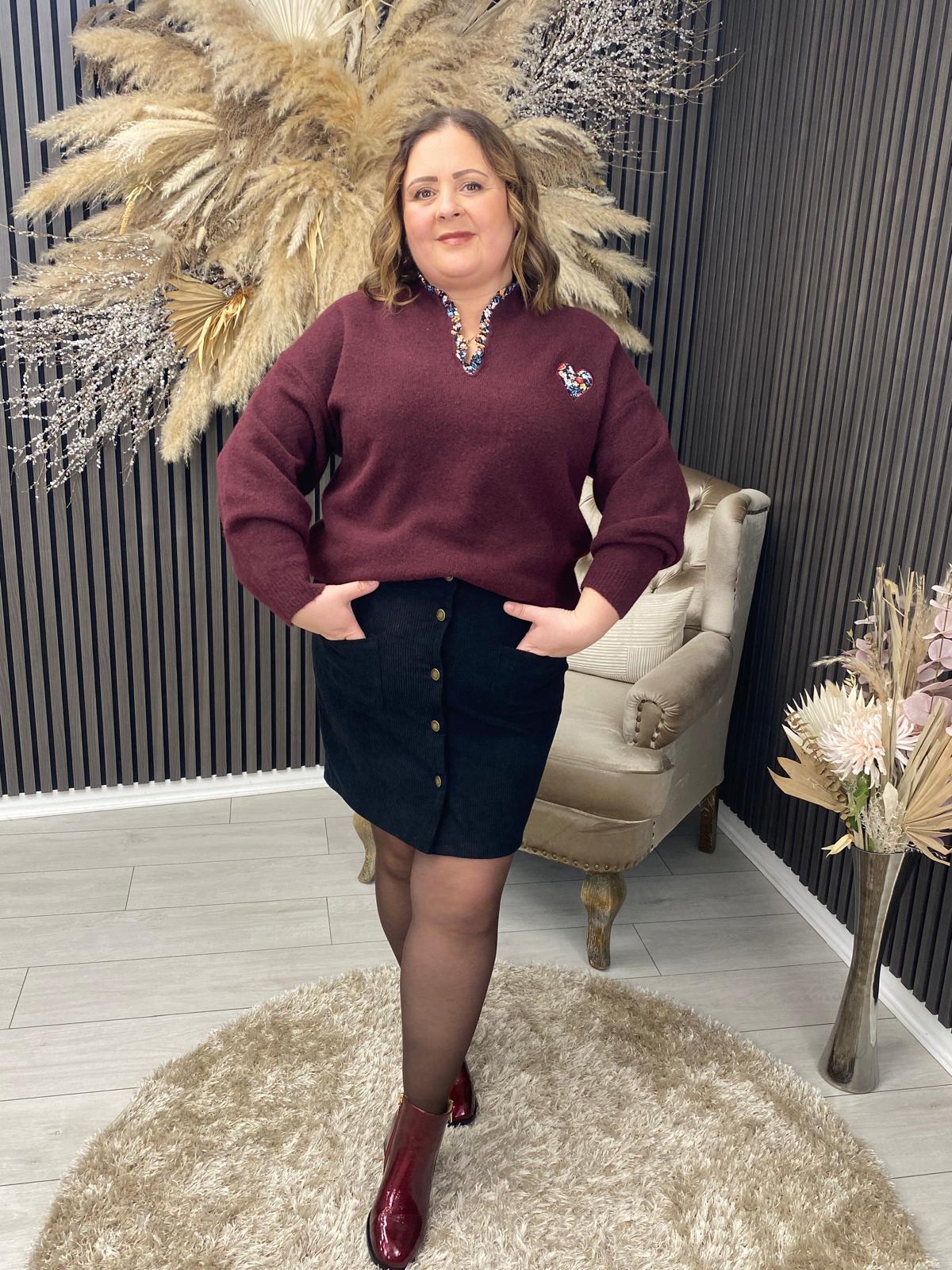This black colorred corduroy skirt features a front button closure for a refined and classic look.
