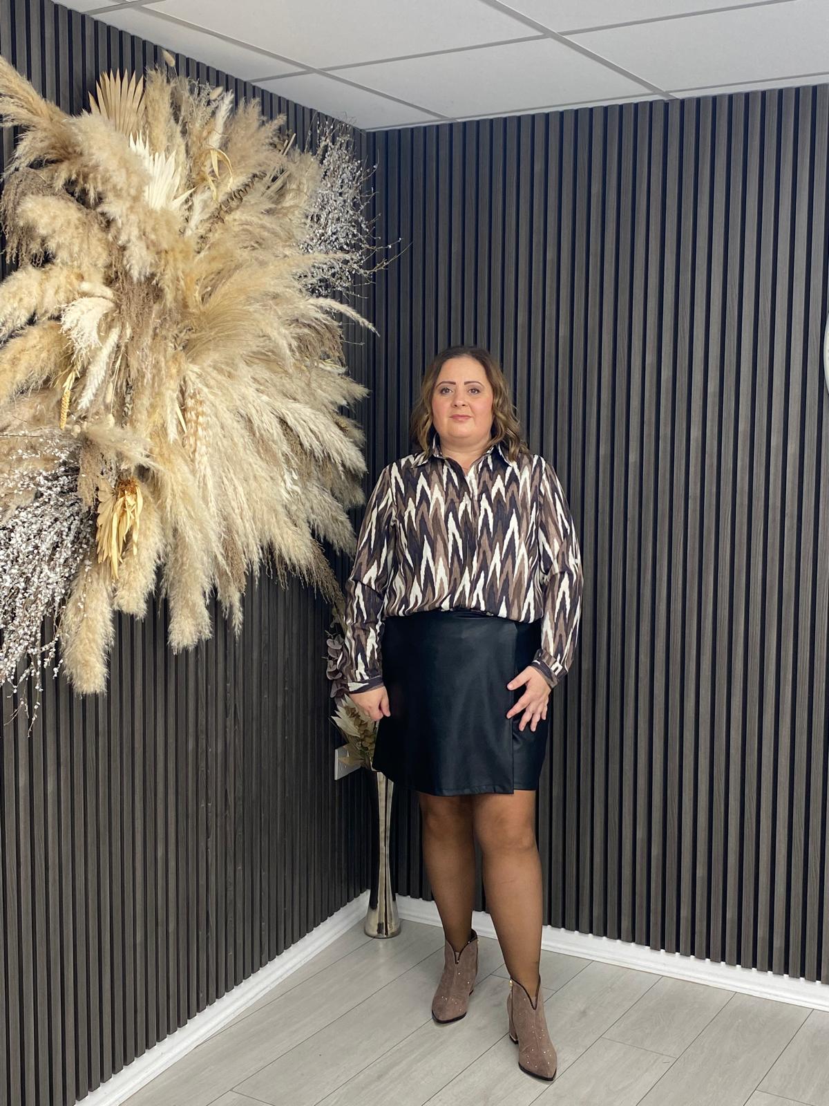 This black skort features a leather-look finish and is available in sizes 16 to 24.