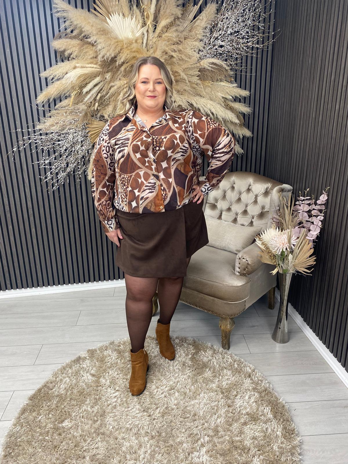 This brown suede skort features an elasticated waistband for a comfortable and secure fit.