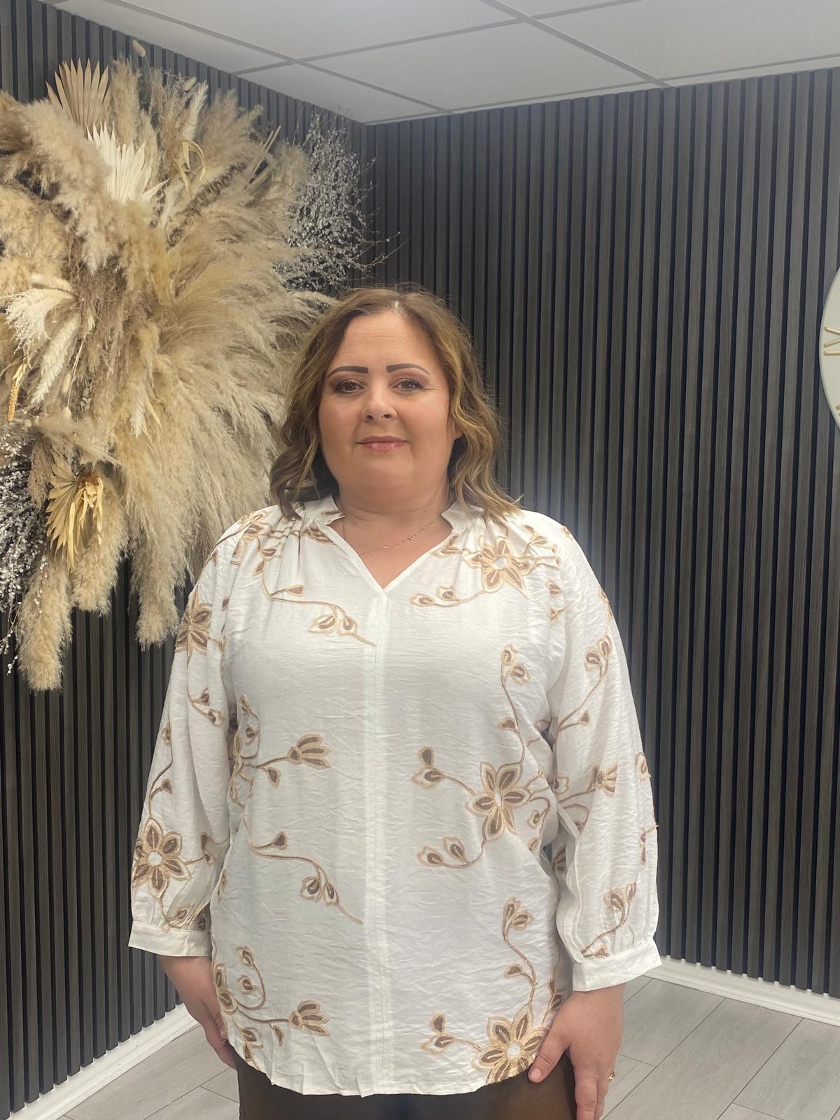 MAY TOP - CREAM/BROWN