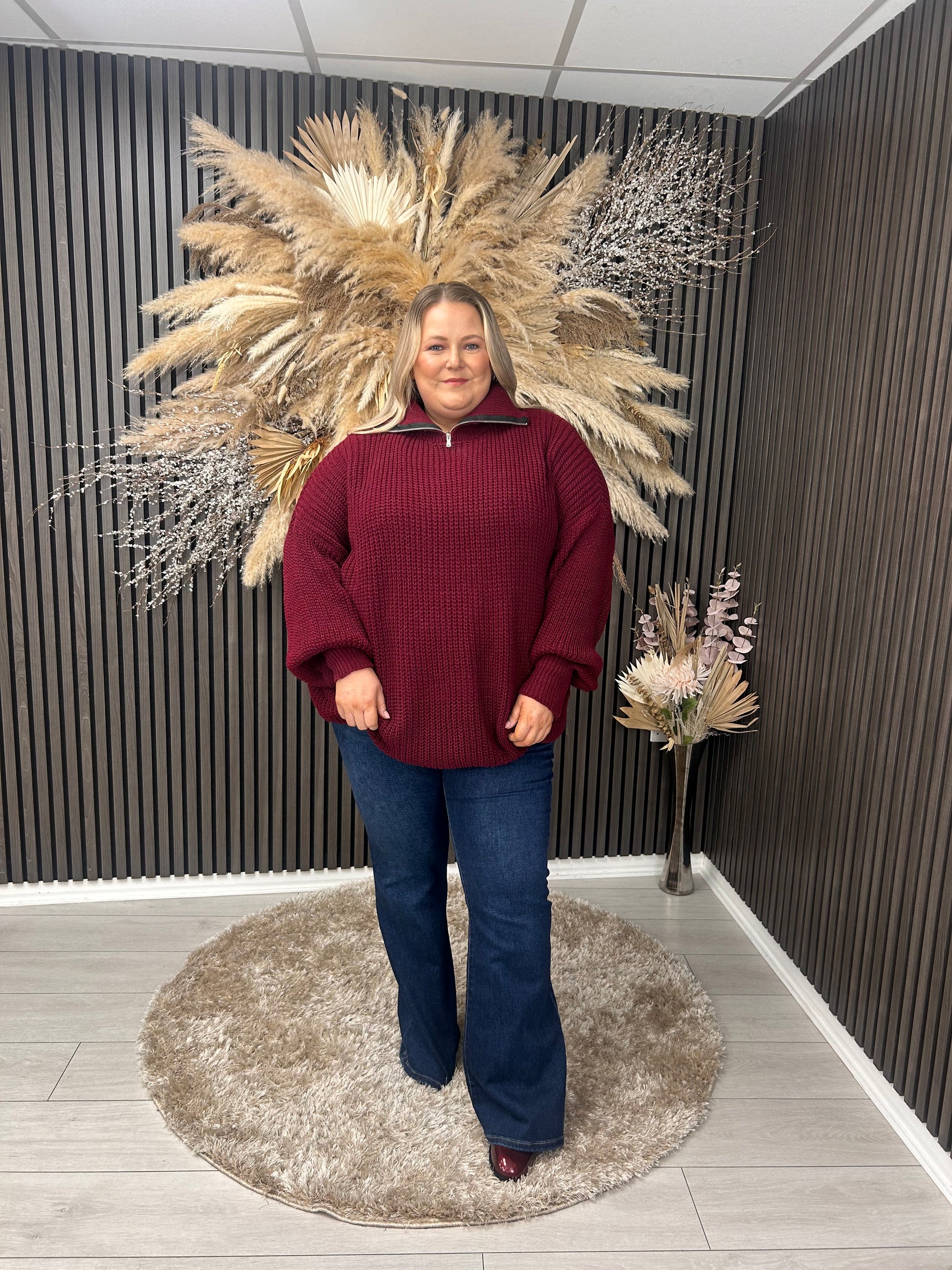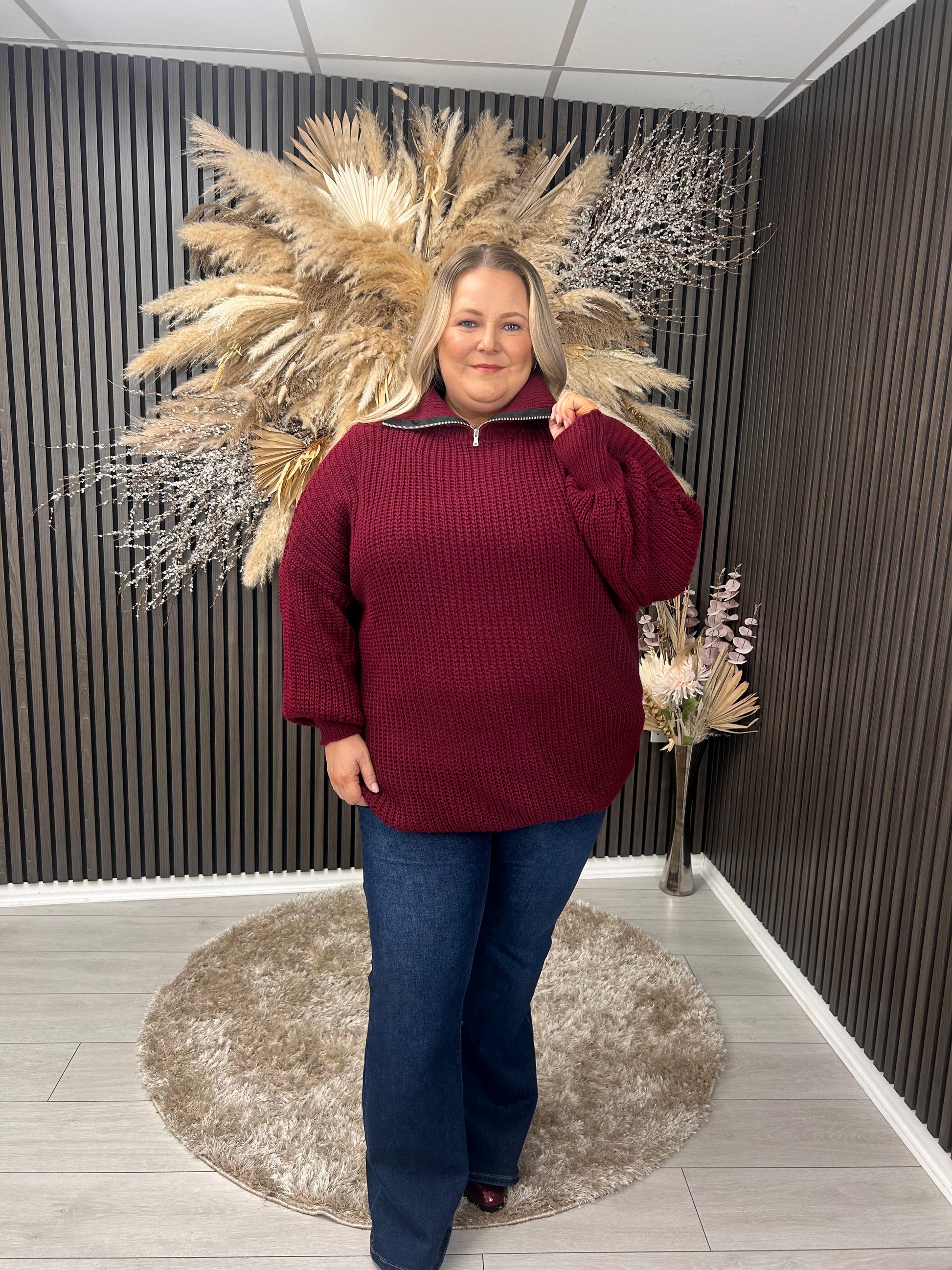 NATASHA 1/2 ZIP JUMPER - BURGUNDY