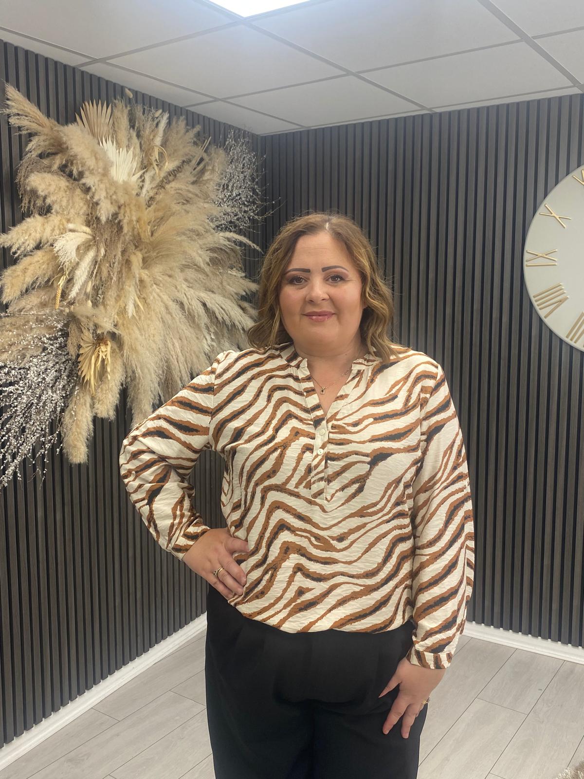 Constructed with a blend of viscose and polyamide, this blouse offers a smooth and comfortable feel.